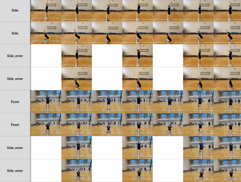 動作中でもある程度評価はできますが、画像を並べると、人それぞれ特徴が出てきます。選手にも客観的に自分の動きを観察し、今後改善に向けて努力してもらうためにも、見えたところで評価をしていきたいと思います。