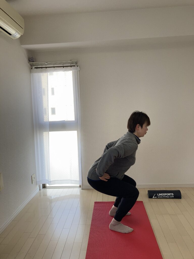 ①股関節と足関節が十分に曲がる(屈曲)できる